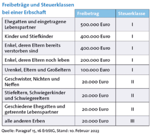 Steuerliche Folgen: Wenn Sie überlegen, wie Sie Ihr Erbe verteilen, sollten Sie auch die steuerlichen Vorschriften kennen, um den Erben nicht unnötig Erbschaftsteuer aufzubürden. Dies gilt insbesondere beim Vererben von Sachvermögen, das dann ggf. zu Geld gemacht werden muss. Beachten Sie aber auch, dass die Erbschaftsteuer je nach Verwandtschaftsgrad unterschiedliche Steuersätze und Freibeträge vorgibt. Wollen Sie zum Beispiel Geschwistern oder deren Kindern etwas vererben, gilt nur ein geringer Freibetrag von 20.000 Euro.
