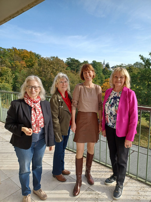 Beim informellen Austausch mit Staatsministerin Heike Hofmann und Dr. Andrea-Sabine Jacobi, Leiterin der Stabsstelle Frauenpolitik, ging es um Anliegen und Interessen, die gemeinsam verfolgt werden könnten. Kernthema war dabei die Vereinbarkeit von Familie und Beruf. Noch immer wird die Sorgearbeit in der Regel von Frauen geleistet, was zu familiär bedingten Freistellungszeiten und damit noch immer zu Beeinträchtigungen im Karriereverlauf und letztendlich zu finanziellen Einbußen in der Versorgung bzw. Rente führt. Hier sollten nicht nur Rahmenbedingungen geschaffen werden, die es möglich machen, die Vollzeiterwerbsquote von Frauen zu erhöhen, sondern es ist eine gerechtere Aufteilung der Sorgearbeit zwischen Männern und Frauen notwendig. Weitere Themen waren Führen in Teilzeit, Arbeitszeitflexibilisierung und Schutz vor sexualisierter Gewalt. Das gemeinsame Gespräch soll als erster Baustein für den zukünftigen und regelmäßigen Austausch dienen.