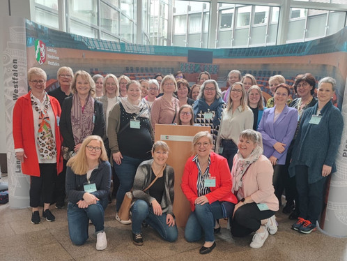Der Besuch des Landtages von NRW in Begleitung von MdL Vanessa Odermatt (CDU) stand ebenfalls auf dem Programm. Es wurde die Frage diskutiert, wie es gelingen kann, den Anteil von Frauen in der Politik zu erhöhen. Im Landtag NRW beträgt er derzeit 35 %. Die junge Abgeordnete appellierte an die Frauen, sich zu trauen. Vorgestellt wurde ein Pilotprojekt „Landtags-Kita“. Die Kinderbetreuung war generell ein Thema in der Gesprächsrunde. Frau Odermatt sprach sich dafür aus, den Fokus auf die Väter zu legen, um eine gleichmäßige Verteilung der Elternarbeit zu erreichen. Der Arbeitgeber müsse genauso davon ausgehen, dass Männer Elternzeit nehmen. Auch bei der Care-Arbeit in der Pflege muss es Ziel sein, den Anteil der Männer zu erhöhen.